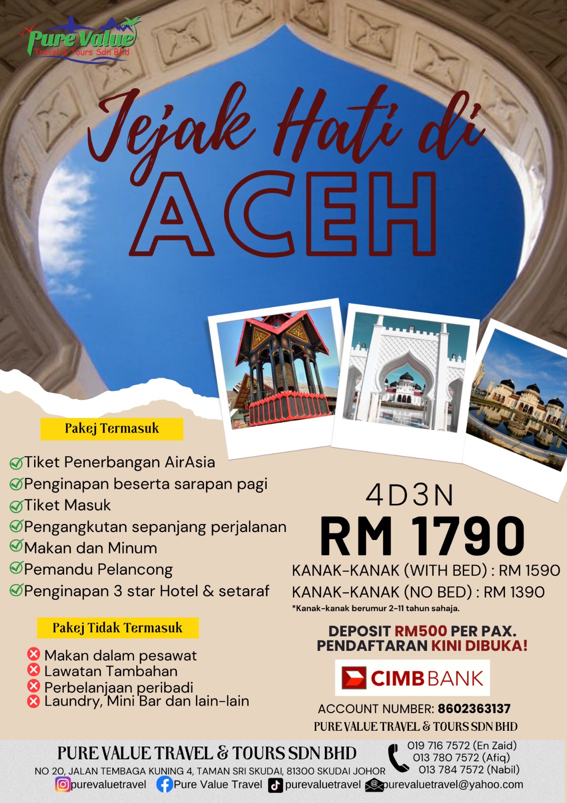 Pure Value Travel & Tours Sdn Bhd (PVTT) is a Bumiputera-owned travel agency in Johor Bahru, established in 2001. Licensed under MOTAC and a MATTA member, we specialize in quality travel services for individuals and businesses.